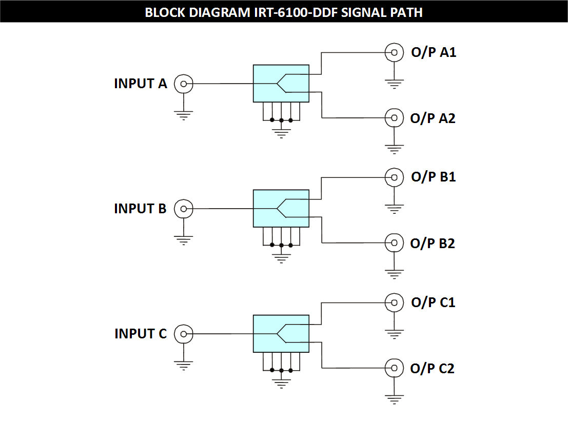 The IRT-6100-DDF is a triple channel 2 way RF splitter in a standard 2 RU openGear® format.