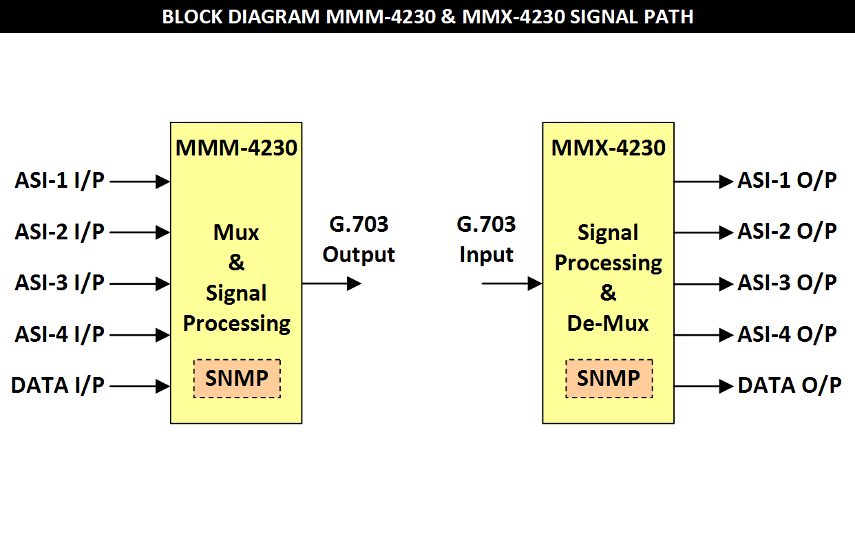 The MMM-4230 and MMX-4230 are part of a family of data transcoders for converting between the commonly used MPEG2 Transport