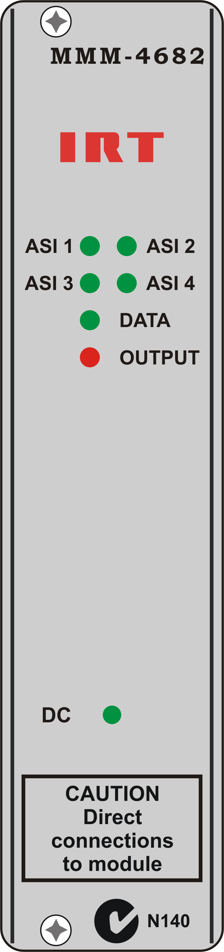 For mounting in IRT 19" rack chassis with input, output and power connections on the rear panel. |