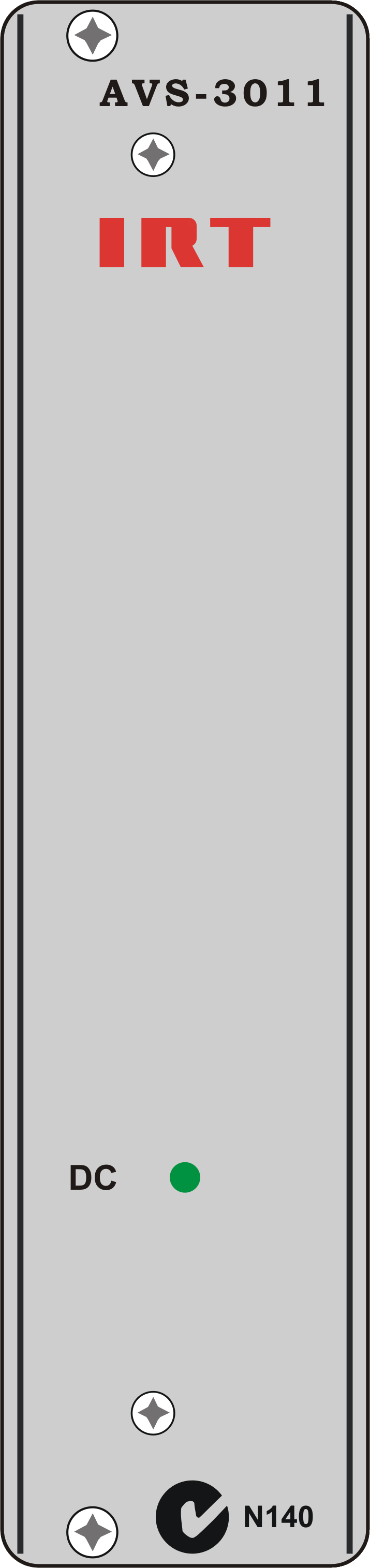 6 HP x 3 U x 220 mm IRT Eurocard. |