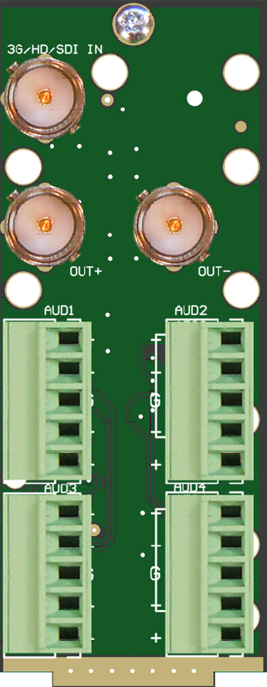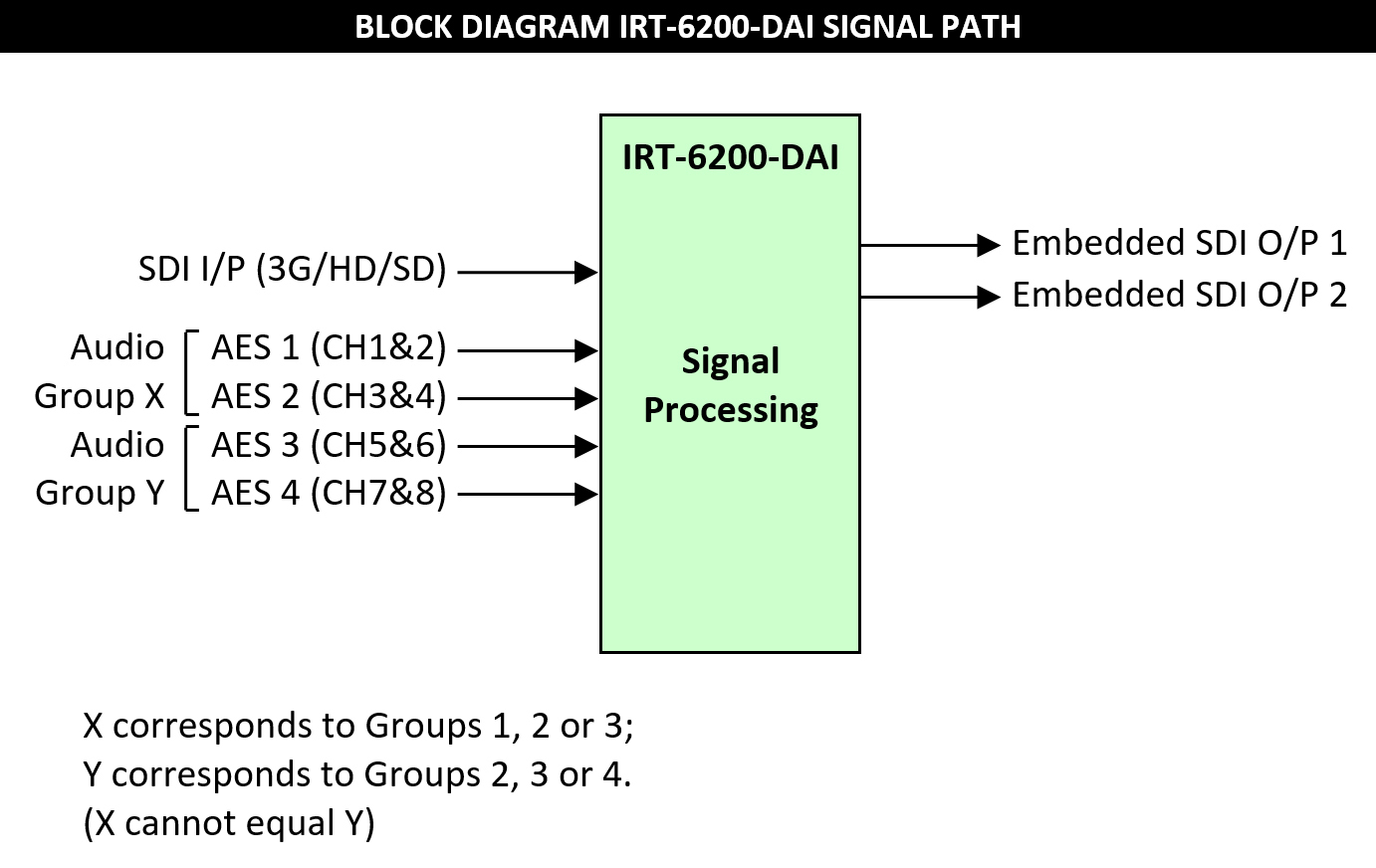 The IRT-6200-DAI is a high performance audio embedder for either 2.97 Gb/s 3G-SDI, 1.485 Gb/s HD-SDI or 270 Mb/s SD-SDI video signals. |